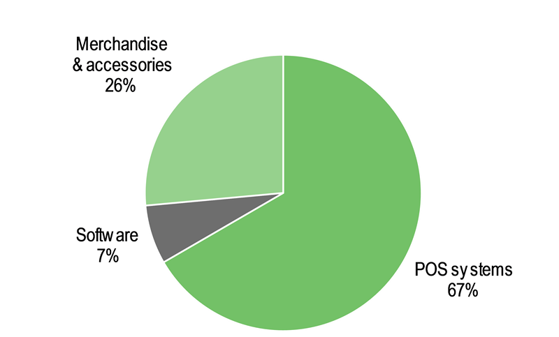 Vectron derives two-thirds of its revenues from the sale of POS systems. This figure also includes the pre-installed proprietary software necessary for the terminals to function. The software segment accounted for 7% of revenues in FY16, and includes software upgrades for the POS systems in addition to back office functions such as the ‘Commander communications software’, which interconnects all Vectron POS systems across branches, and amalgamates the data. The final reported segment is that of merchandise and accessories, which is made up of a combination of Vectron products such as customer display screens and contactless card readers, in addition to the resale of third-party products such as printers, scanners and cash drawers, all of which can be networked with the Vectron POS systems.