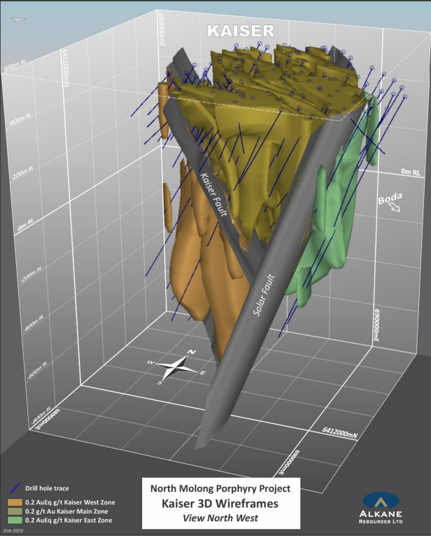 Exhibit 6: Three-dimensional model of Kaiser mineralisation showing faulting