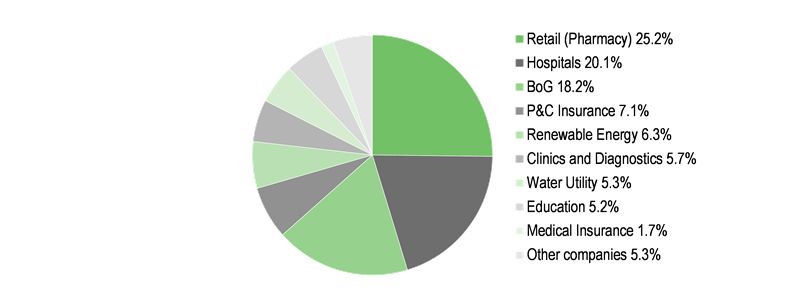 GCAP plans to enable its large, capital-light portfolio companies to explore regional growth opportunities. In the near term, management sees immediate regional expansion potential in its retail (pharmacy) business, with a five-year target of 400 pharmacies in Georgia (vs 353 currently) and at least 30 stores in Armenia, as well as entry into the Azerbaijan market. GCAP’s CEO believes that this business can expand in a capital-efficient manner, that is it can double its market size by investing US$5–10m in total (including working capital), given the cost of opening a pharmacy in Armenia is c US$50,000. In the longer term, GCAP considers its education business, as well as clinics and diagnostics business promising in terms of regional expansion. It is still in the process of assessing the prospects of the auto services business (where it has invested c US$4.6m in total so far). Beyond the above (and some incremental investments in the renewable energy and education businesses), GCAP is unlikely to make any large new investments in the next three to five years. With respect to more capital-heavy industries (such as hospitals or insurance), GCAP will consider managing third-party capital and/or establishing partnerships. We note that the company is unlikely to purchase an additional stake in BoG (in which it already holds 19.9%) given opposition from the local regulator (as highlighted by GCAP’s CEO during the recent CMD).