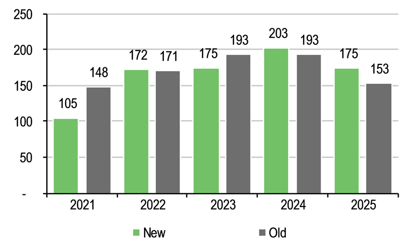 Canacol will invest US$172 to US$209m in capex in 2022, which will be fully funded from existing cash and 2022 operating cash flow. This will support gas sales capacity, which is currently 230mmscfd. The company expects an EBITDAX of US$163m to US$230m from its estimated gas sales range of 160mmscfd to 200mmscfd. Canacol has maintained its quarterly dividend at 5.2 US cents per share. The company strengthened its balance sheet in November, with the successful placing of US$500m in 5.75% senior notes due 2025, which were partially used to refinance existing debt (c US$380 at 7.25%).