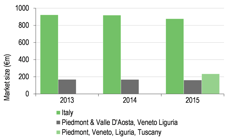 The Italian fresh milk and ESL (extended shelf life) market was worth €574m in 2015 (source: IRI Infoscan Hypermarkets + Supermarkets), but it is very localised, with different players in the different regions. Milk brands tend to be local and tied to each region or province, and indeed consumers are used to buying local milk brands. There has been some degree of consolidation, with Parmalat and Granarolo emerging as the two leading players on a national scale both with c 23% market share, but even they use several local brands in addition to their main brand (eg Centrale del Latte di Roma and Centrale del Latte di Milano respectively). Distribution is also affected by the local nature of the business, with a significant proportion of fresh milk bought on a regular basis, and hence in local shops rather than in supermarkets or hypermarkets. This again tends to favour regional and local brands. While fresh milk typically lasts a few days before souring, ESL milk is microfiltered and lasts up to one month, but still requires refrigeration.