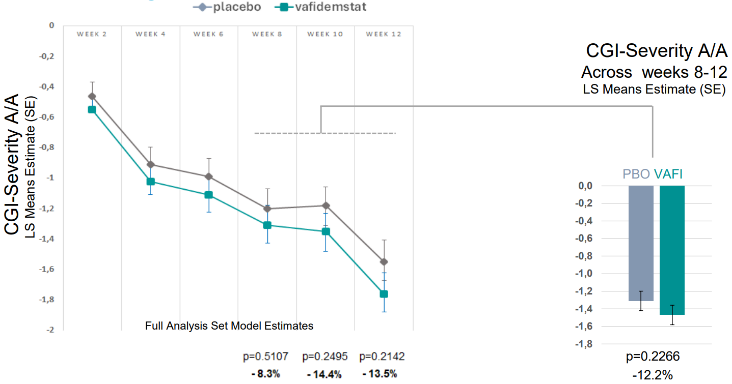 Despite its c 2% prevalence in the general population, BPD is a neglected condition with no approved drugs and no established regulatory endpoints. For PORTICO the selected primary measures were overall improvement in BPD severity (Borderline Personality Disorder Checklist (BPDCL)) and reduction of agitation and aggression (Clinical Global Impression – Severity Agitation/Aggression (CGI-S A/A)). The two key secondary endpoints had similar focuses but with alternate measures: Borderline Evaluation of Severity (BEST) and State-Trait Anger Expression Inventory 2 (STAXI-2) Trait Anger. While the primary endpoints were not met with statistical significance, vafidemstat was favoured over placebo in all measures and the secondary endpoints were met with statistical significance, showing clinically meaningful benefits. The final data also highlight improved statistical significance compared to the top-line results released in January, strengthening the data package for the programme, in our view.