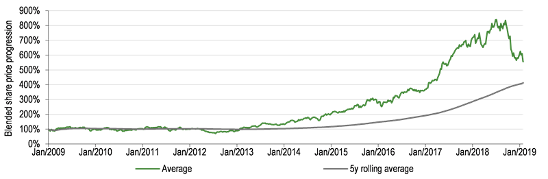 Source: Refinitiv data, Edison Investment Research. Note: Prices as at 22 February 2019.