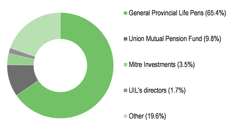 Modest 20% free float – the majority of UIL’s shares are closely held.