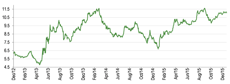 Is Investment Trust had TRY238.2m of total assets at end 2015 (net assets TRY235.5m), of which c 88% was invested in fixed-income securities and cash and equivalents and the remainder mostly in equity investments. The rise in Turkish bond yields in 2015 resulted in mark-to-market declines for Is Investment Trust’s fixed-income portfolio in 2015 and the near 80% fall in attributable profit.