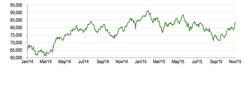 Turkish equity markets started 2015 in optimistic mood as falling oil prices were expected to lower inflation, which would allow interest rates to fall and boost economic activity, so the Borsa Istanbul rose to over 91,000 by the end of January, 45% higher than the year before. However, since that date, negative global and local economic and political developments including negative sentiment towards emerging markets, have resulted in a decline in the index. There was a rebound in the index after September, which has continued after the decisive outcome of the general election. However, sentiment remains fragile.