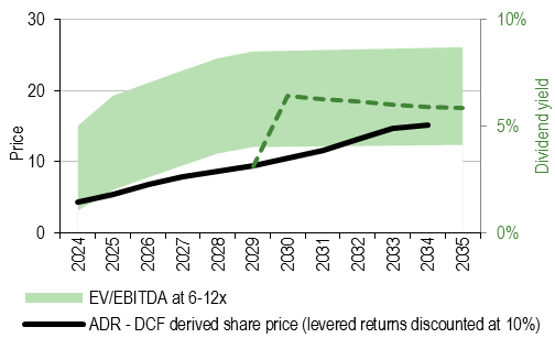 Tax risks: Magnolia is subject to federal and state taxes of 38%, with a 2% land tax (2% of asset value, with a five-year tax break extendable for a second five-year period). For Bear Head, we apply the 38% corporate tax rate and a 16% Nova Scotia state tax. We have not modelled any other taxes or tax breaks. See the valuation sensitivities section for the effect of additional taxes, which cannot be ruled out.