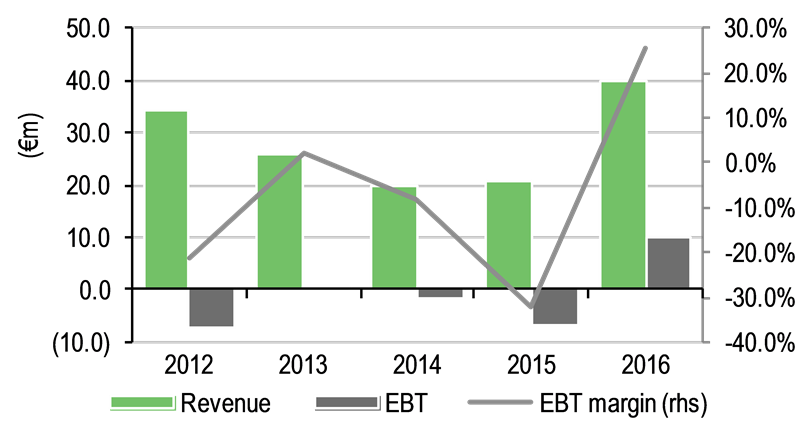 Revenues and profits both showed a material increase in 2016 as a result of the first time consolidation of the newly acquired businesses (Exhibit 2), while the 2016 revenue split shows a significant shift towards ship management and asset management. A full year contribution from the acquired business is expected to further increase these revenues in 2017.