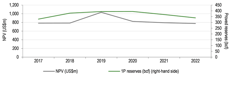 Most of the group’s sales are under fixed-price, long-term contracts giving stable netback margins. This gives very clear visibility on the earnings of the group, and protect investors from the usual volatility of commodity prices. We expect EBITDAX to increase from US$198m in 2022 to US$365m in 2025. With good visibility on cash flow, management is willing to return funds to shareholders by means of a dividend and share buybacks.