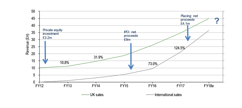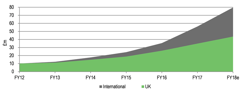 The Swedish hub near Stockholm opened in November 2016 and the German one near Dusseldorf in February 2017. It is therefore nearly a year since the physical move to continental Europe was launched. In May, we noted that the German centre was at an early stage of trading and was likely to remain inefficient during H118. However, by August 2017 both the centres were making positive contributions to central costs, a promising position to be in ahead of the busier second half. With half-year costs of £0.7m and assuming similar gross margin to the rest of the business, it could be inferred that run-rate annual revenue from the centres is currently £5-6m, or some 7% of revenue.