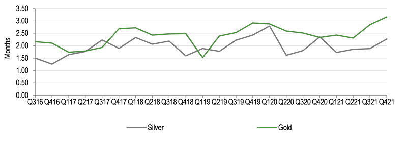 At the time of its Q321 results, WPM reported that its corporate development team had been ‘exceptionally busy’. While the majority of potential deals were reported to be with development companies in the US$100–300m range (with fewer ‘balance sheet repair’ opportunities), it was also reported there had been a number of approaches made by producing companies for transactions to fund expansion and even to fund M&A activity. In the first instance, WPM would fund any such transactions via the US$2bn available under its revolving credit facility, plus US$372.5m in cash (at end-Q321) and, potentially, its US$300m at-the-market equity programme.