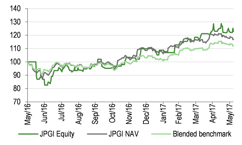 At 31 March 2017, JPGI had 88 holdings, towards the top of its 50-90 stock range. The strict valuation focus of the JPGI investment process means that turnover in the portfolio can be relatively high, at 60-80% a year, as stocks may move out of the two cheapest valuation quintiles, prompting a reassessment of the investment case and often a switch into something offering better value.