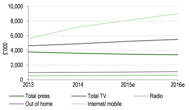 Exhibit 6: Trends in UK media advertising revenues