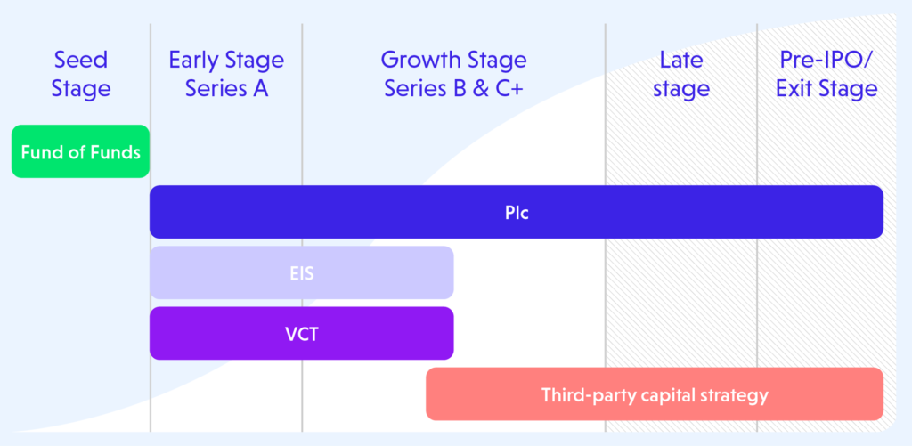 Molten sees opportunity in building structures that are designed to enable institutional co-investment, thus amplifying impact while maintaining a high-conviction portfolio. Additional capital through these structures (along with their managed EIS and VCT funds) helps to support ability to access high-quality deal flow and consistent deployment in later-stage deals.