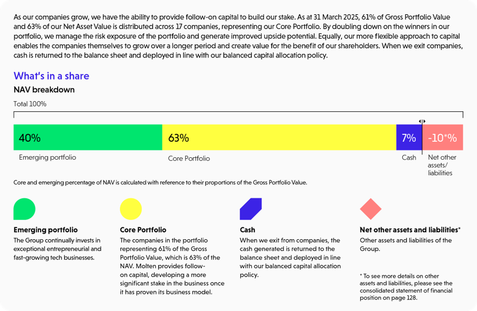 Molten has a core portfolio that is made up of 17 companies, representing 61% of the gross portfolio value.